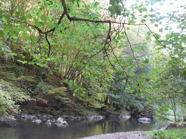 Rheinuferspaziergang mit Schnupfennase. Ich muss den Herbstzweig vom Gesicht fernhalten, sonst niese ich ihm die Blätter runter.